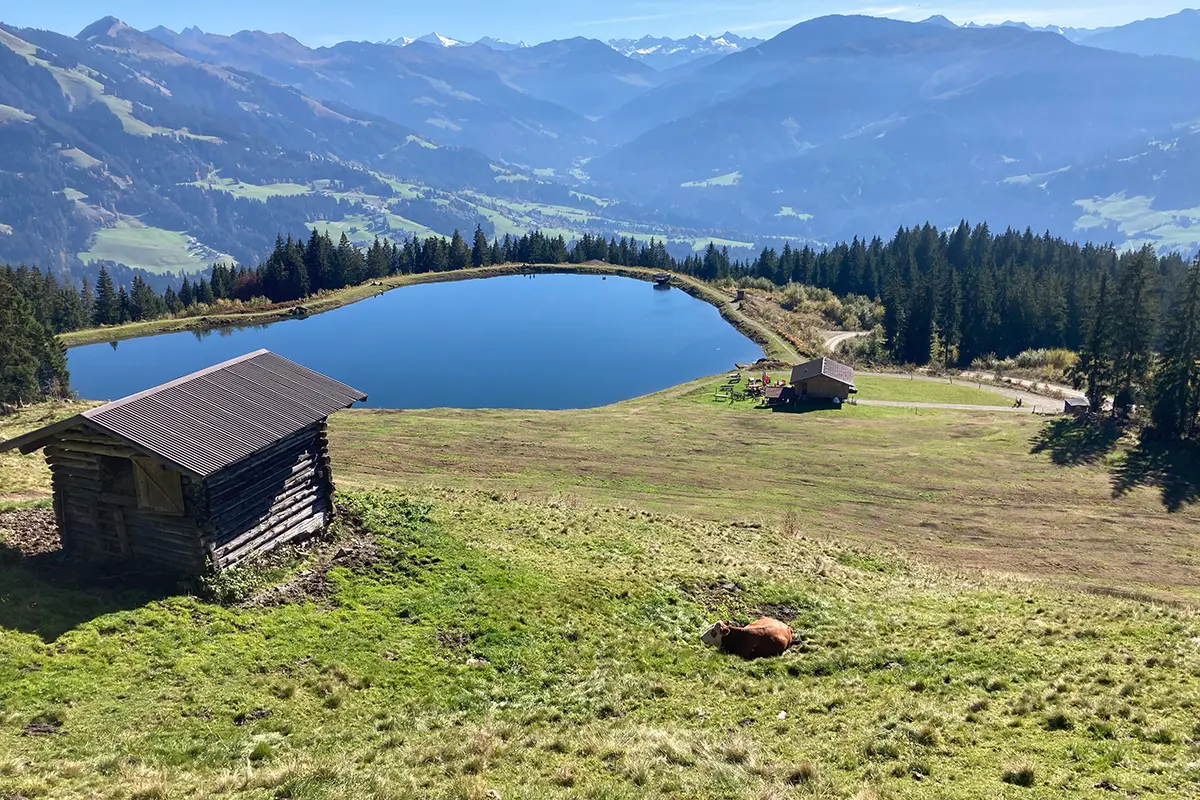 In Kirchberg führt die Route weiter nach Norden, vorbei am Golfplatz Kitzbühel-Schwarzsee nach Reith bei Kitzbühel. Folgen Sie der Beschilderung durch den Ort, bergauf Richtung Astberg und wieder bergab auf dem Schösserweg bis zur L202.